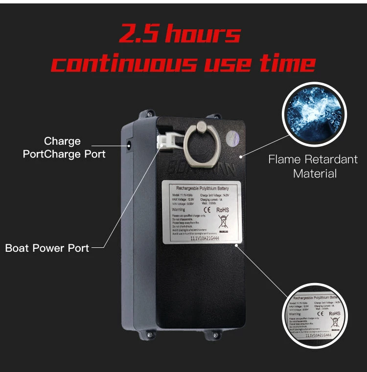 Stay using the many features of your favourite baitboat, with this powerful Lithium battery. It will give you an extra 2.5 hours continuous use.