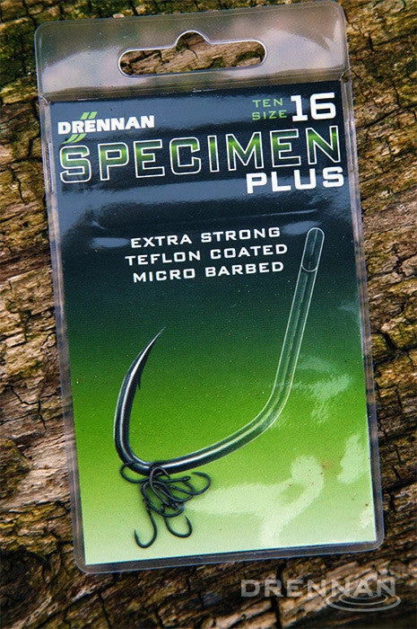 Drennan Specimen Plus hooks are designed for the big fish speÂcialist angler, they have an unusual drop angle bend which is a mechÂanÂicÂally strong shape.