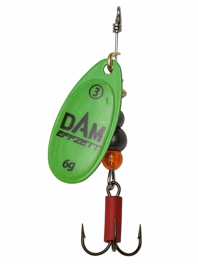 These spinners belong in every tackle box, especially in low light conditions or in murky waters. Switching to one of these fluorescent colours can be the difference between a wet or dry net.