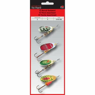 The DAM Effzett Perch Spinner Assortment is a universal set, consisting of 3 spinners in size 2, weight 4g.