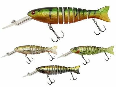 Realistic 7-joint body design Aggressive curly deep diving action Floating 25kg breaking strength on mesh fabric Two ultra-sharp EFFZETT trebles.