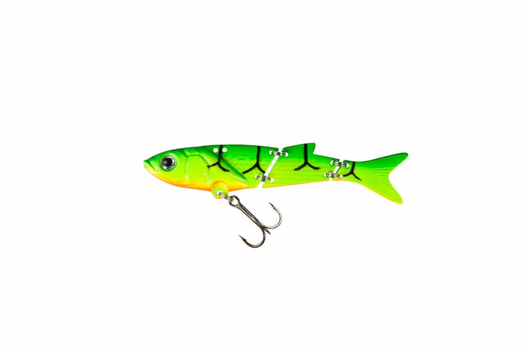 The EFFZETT® Swim Blade is based on a completely new concept of jointed metal vibration blade lures, shaped and designed as lifelike as possible to imitate an escaping baitfish. The strong vibe and wide flanking tail action of the Swim Blade is different to common one-piece metal blade lures which normally have a very aggressive narrow vibe. Even though the EFFZETT® Swim Blade has only one treble at the belly and no tail treble the hookup rate is extremely high. Reason for that is the jointed body, which is folding up when the fish attacks the lure. The Swim Blade works best with a steady medium to high retrieve speed and flies like a bullet. The perfect lure to target asp, perch and pike.