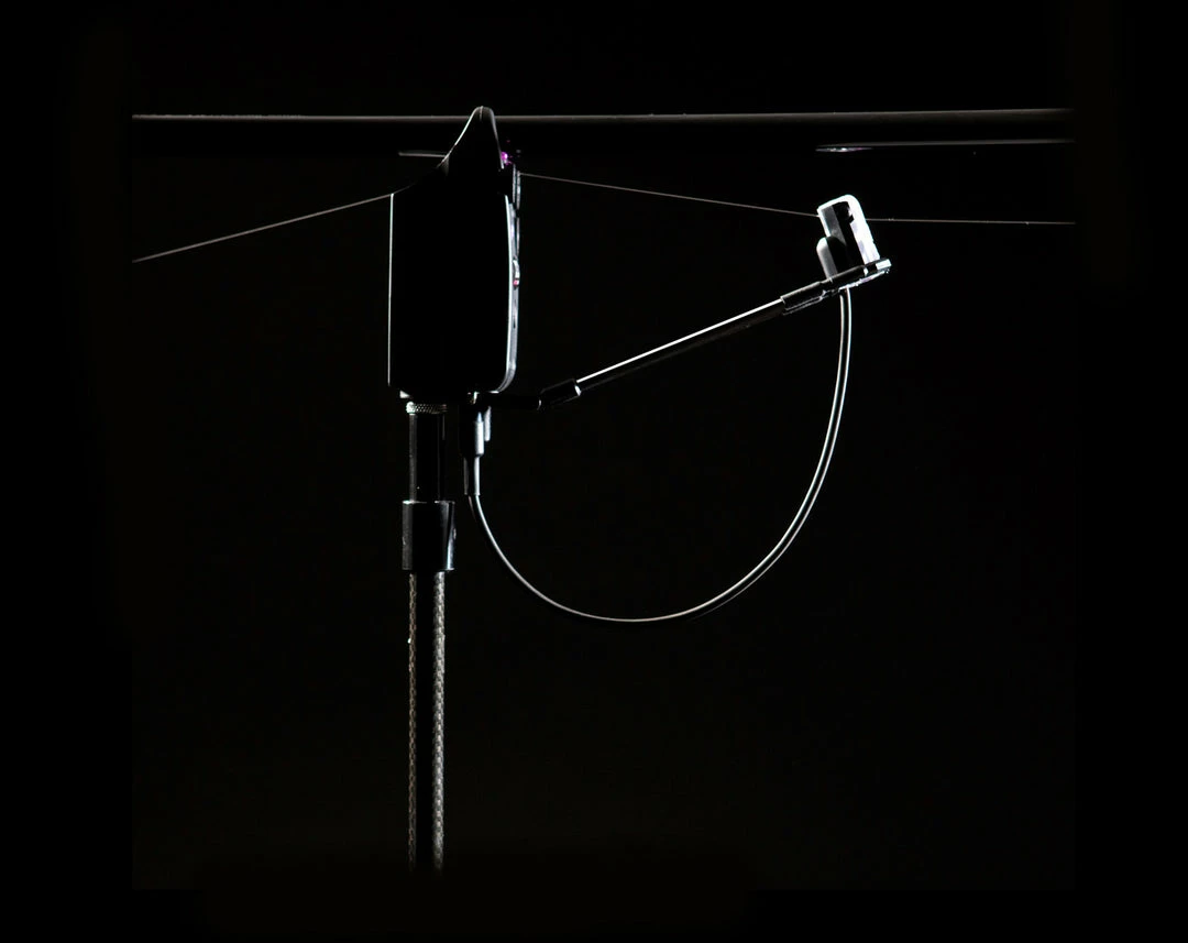 The Delkim DuoCarb Pivoting Hanger Support is a patented groundbreaking product. It was designed around the concept that the free hanging visual indicator or hanger gives the best overall visual indication of a bite but may not be perfect for all situations or tastes, particularly in very windy conditions. When set up the DuoCarb can be used to instantly support the NiteLite Pro Illuminating Hanger or any hanger as needed. The extendable twin carbon fibre frame adds only 3g effective weight and supports the hanger perfectly with no sideways movement. When required the DuoCarb can be instantly detached from theNiteLite Pro and allowed to hang down unconnected or it can be quickly removed altogether for storage.