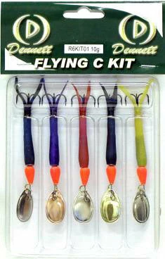 The Flying ‘C’ is probably the most successful salmon lure of the modern era. Dennett Flying C Spinners have been a favourite with salmon and trout anglers for years, their mix of highly attractive spinner blade and colour tubing body just seems to turn fish on!