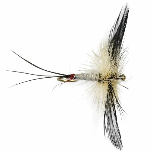 The classic spent Mayfly imitation. This fly is tied with a greyish white body, sparse long hackle and super flexible wings (so it does not twist your leader as much) and the signature tail.Â