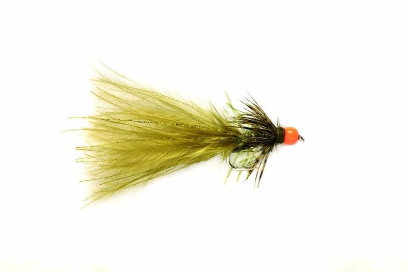 A Damsel nymph imitation featuring a body tied with Straggle material and a hot orange bead for added attraction and to help gain extra depth when the fish are feeding deep down.