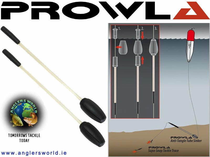 Prowla Anti-Tangle Tube Sinkers can be fished with a float rig or on a straight ledger. Simply thread your main line through the tube, tie on your trace and pull the trace swivel into the rubber tube. This gives a semi-fixed weight and helps to prevent over wraps and tangles when fishing in deep water. The tube sinker offers a quick-change ability working in exactly the same manner as Prowla Quick Change In-Line Sinkers. Simply pop open the weight stem, slide the lead off your line, replace with the desired size, and click the stem parts back together.