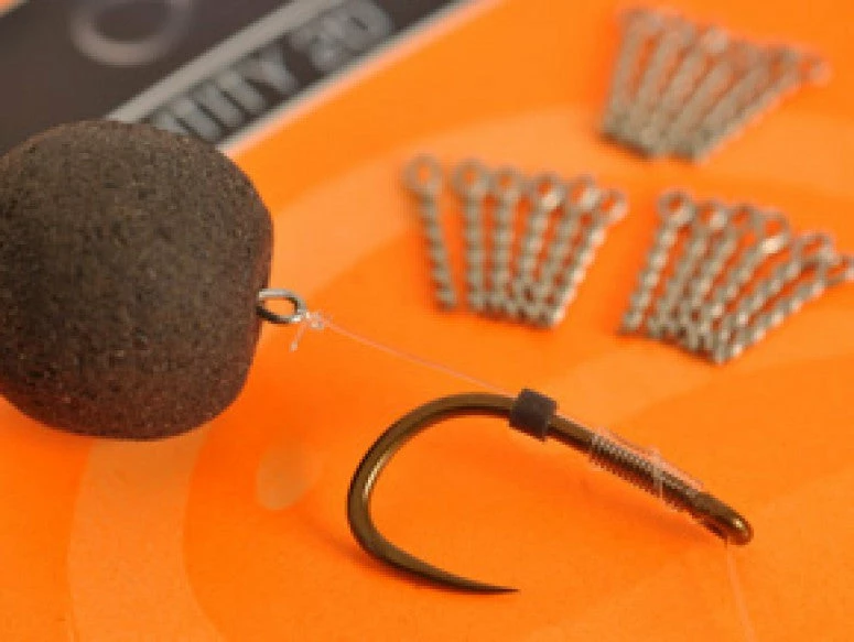 Our Bait Bayonets make changing tough boilie or artificial hook baits quicker than ever. They’re a simple, twisted metal spike with a ring on the end, which allows it to be tied to a hair rig.