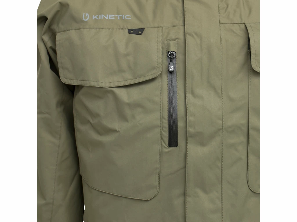 The Kinetic AquaSkin II Jacket keeps you dry in wet conditions and features a host of angler-friendly details. 2-layer waterproof/breathable fabric, adjustable hood, 3 chest pocket, D-ring on back and draw-cord adjustable bottom hem. Don’t head out fishing with waders without a wading jacket!