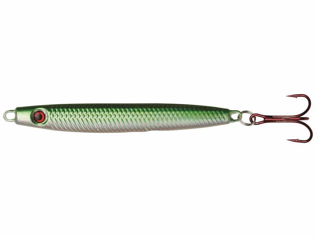 Slim, lively, non-lead pilk with hybrid speed and oversized 3D eye to attract fish even in the deep. High quality split rings and hooks make this a perfect and quick pilk.