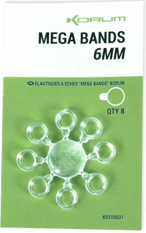 Korum Mega Bands are super tough bait bands that can be directly hooked to create an easy and simple setup for fishing with a wide variety of baits. The extra wide profile makes them easier to hook on and improves lifespan.