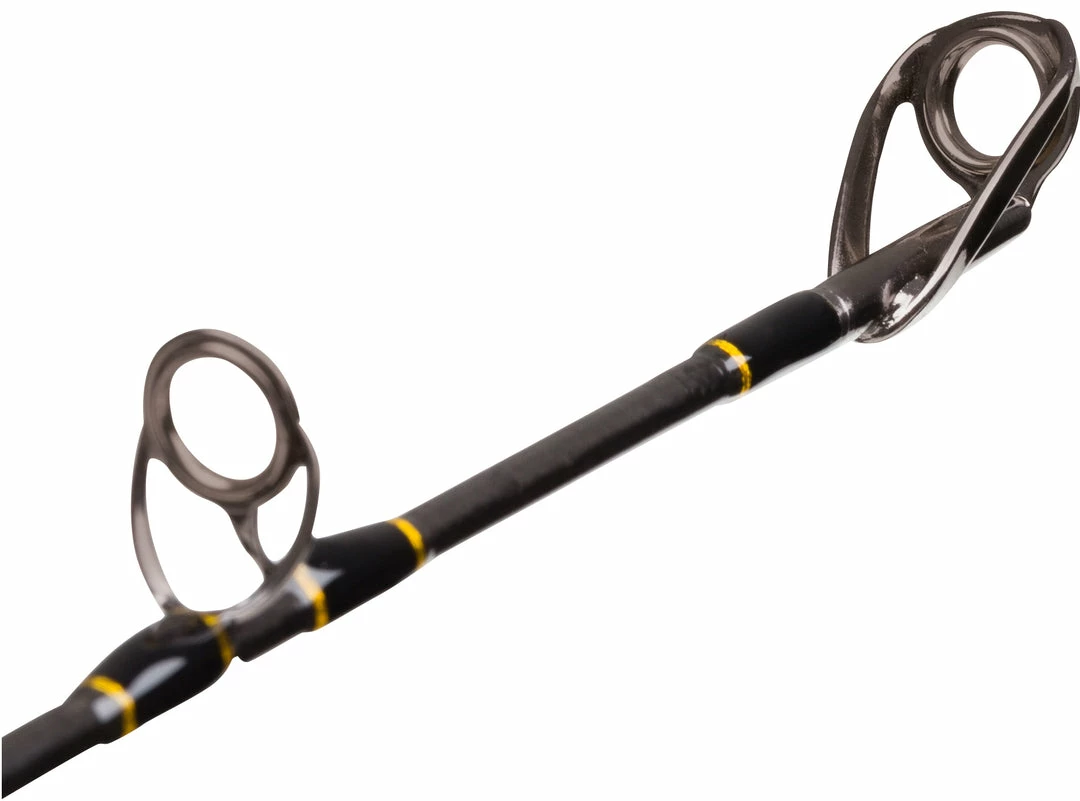 Designed with specific 20lb, 30lb and 50lb line class actions to give the offshore angler targeting big fish maximum performance. These lightweight, low diameter, fast action blanks are fitted with special Fuji intermediate rings. These are designed to flex with the blank to preserve the perfect compression curve and maintain maximum fighting performance. A specially shaped fore grip fits the hand for increased comfort when fighting big fish for long periods of time.