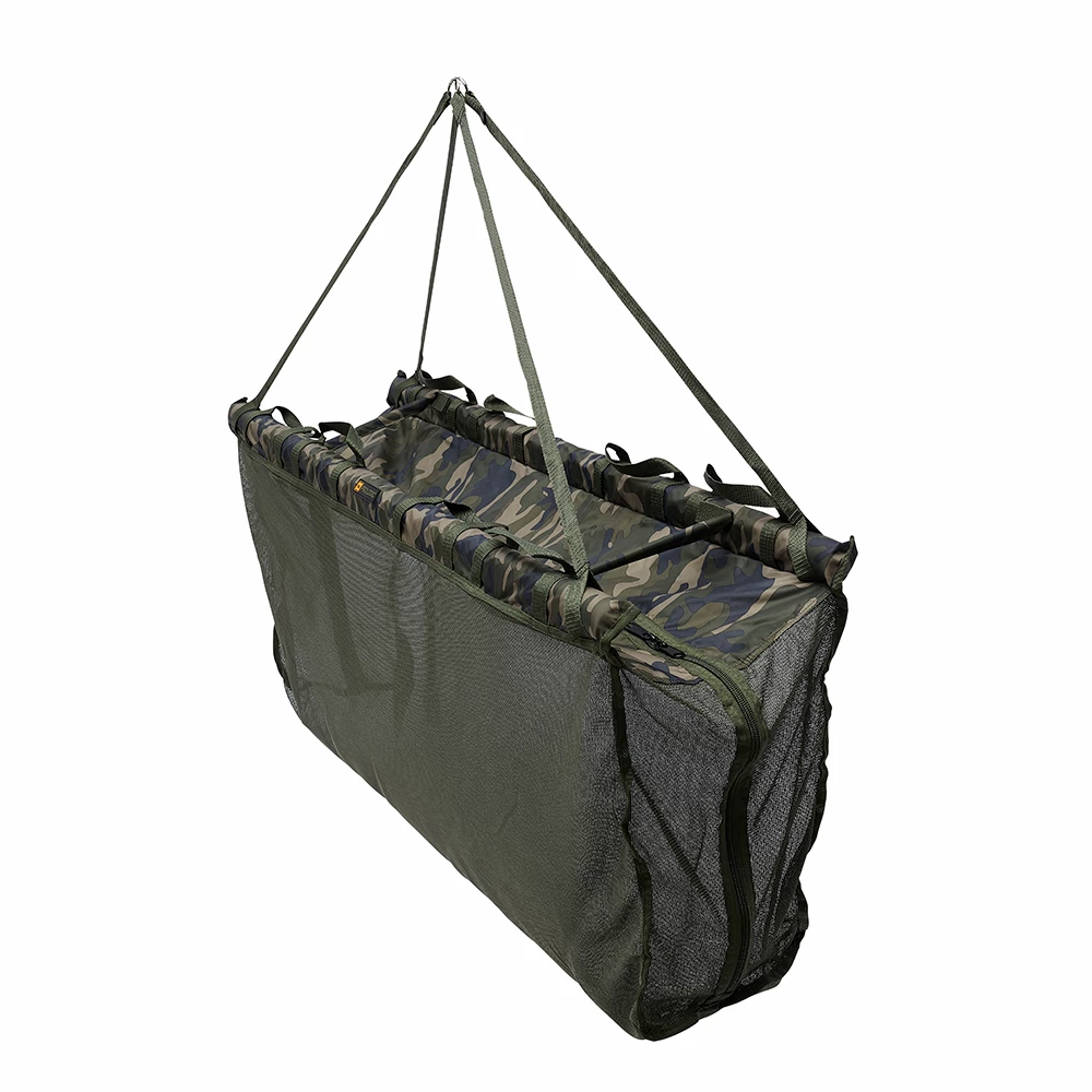The dense solid hood fabric helps by subduing light and reduces heat penetration helping to keep your catch, cool and relaxed while aiding recovery without increased stress. Four sets of carry handles of differing distances apart give you further options of security, a better grip and allowing a safer transition to and from the water. Two large weighing straps with centred steel rings allows for effortless and easy weighing.