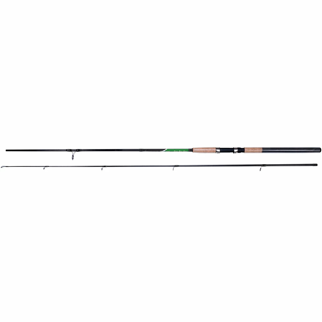 The bottom section includes a hard wearing and high quality cork/EVA handle mix for comfort and a good grip. The rod is fitted with a quality reel seat and has a sleek black and metallic green colour scheme.