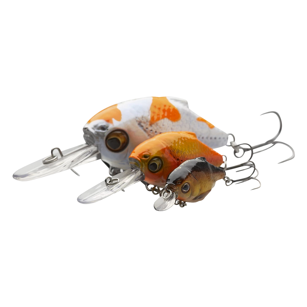 Ornamental Goldfish from Crucian Carp often finds way to our lakes, Rivers and ponds – they are prime targets and often easy prey for predator fish! Our 3D Crucian crank baits swim with a big noisy rolling wobble and imitate the real thing perfect!Â