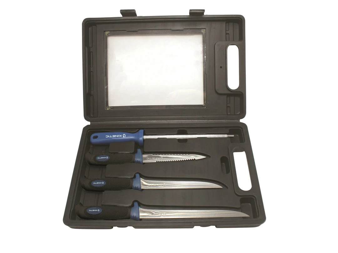 This kit offers all what you need to process your catch. No matter how big or small, you have 3 knifes for all situations. The steel used for these knifes is easy to sharpen and the enclosed sharpener will bring the knife back to perfect sharpness in seconds!