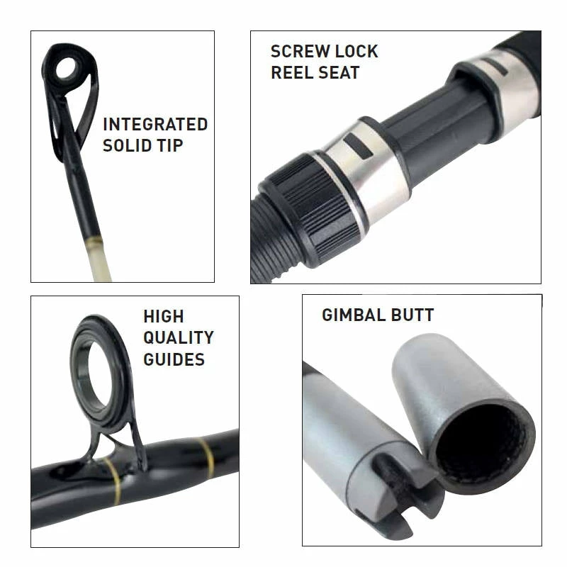 Rovex Altus rods feature powerful thick wall blanks and a genuine Integrated Solid Tip. These rods will stand up to big game pressure. Made with sturdy guides that are under and over bound, these rods represent fantastic value.