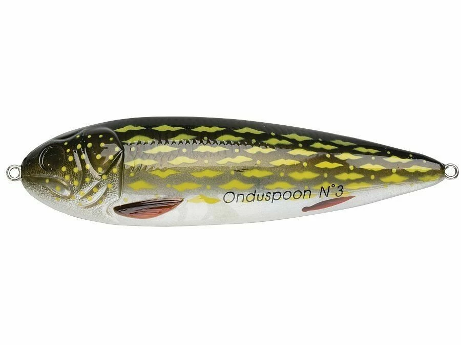 For balance, the Onduspoon includes a fixed weight in its forward section. This enables the angler to impart some interesting actions. You can work the highly-responsive Onduspoon like a jerkbait, you can walk the dog with it, twitch it, skitter it on the surface and do many things that few if any other spoon can do.