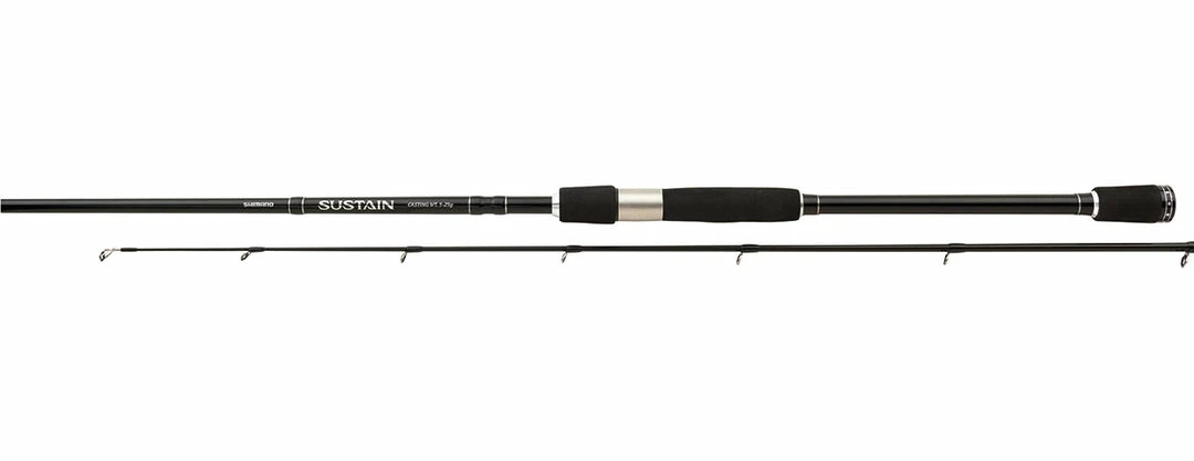 The Sustain is a lightweight rod with an extra fast tip action for precision casting and ultimate lure control. With its sharp black and silver appearance it is a perfect match with a Sustain reel. Completed with Fuji K-type guides.