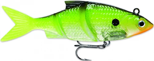 With a variety of sizes and realistic color patterns this lure can target any species. Soft body, lipless segmented kicking tail action, slow sinking and 3-D holographic eye make this lure looks like a real shad. Includes holographic inserts for added attraction, soft PVC material with reinforced mesh for added strength and VMC® black nickel hooks. This is a lure you can be confident will catch fish.